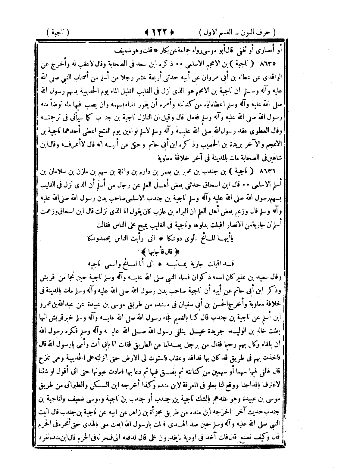 <222> أو أنصاري أو ثقفي قال أبو موسى رواه جماعة عن بكار قلت وهو ضعيف ناجية بن الأعجم الأسلمي ذكره بن سعد في الصحابة وقال لا عقب له وأخرج عن الواقدي عن عطاء بن أبي مروان عن أبيه حدثني أربعة عشر رجلا من أسلم من أصحاب النبي صلى الله عليه وسلم أن ناجية بن الأعجم هو الذي نزل في القليب القليل الماء يوم الحديبية بسهم رسول الله صلى الله عليه وسلم أعطاه إياه من كنانته وأمره أن يغور الماء بسهمه وأن يصب فيها ماء توضأ منه رسول الله صلى الله عليه وسلم ففعل قال وقيل إن النازل ناجية بن جندب كما سيأتي في ترجمته وقال العطوي عقد رسول الله صلى الله عليه وسلم لواءين يوم الفتح أعطى أحدهما ناجية بن الأعجم والآخر بريدة بن الخصيب وذكره بن أبي حاتم وحكى عن أبيه أنه قال لا أعرفه وقال بن شاهين في الصحابة مات بالمدينة في آخر خلافة معاوي ناجية بن جندب بن عمير بن يعمر بن دارم بن وائلة بن سهم بن مازن بن سلامان بن أسلم الأسلمي قال بن إسحاق حدثني بعض أهل العلم عن رجال من أسلم أن الذي نزل في القليب بسهم رسول الله صلى الله عليه وسلم ناجية بن جندب الأسلمي صاحب بدن رسول الله صلى الله عليه وسلم قال وزعم بعض أهل العلم أن البراء بن عازب كان يقول أنا الذي نزلت قال بن إسحاق وزعمت أسلم أن جارية من الأنصار أقبلت بدلوها وناجية في القليب يميح على الناس فقالت يا أيها المائح دلوي دونكا إني رأيت الناس يحمدونكا قال فأجابها قد أقبلت جارية يمانيه أني أنا المائح واسمي ناجيه وقال سعيد بن عفير كان اسمه ذكوان فسماه النبي صلى الله عليه وسلم ناجية حين نجا من قريش وذكر بن أبي حاتم عن أبيه أن ناجية صاحب بدن رسول الله صلى الله عليه وسلم مات بالمدينة في خلافة معاوية وأخرج الحسن بن أبي سفيان في مسنده من طريق موسى بن عبيدة عن عبد الله بن عمرو بن أسلم عن ناجية بن جندب قال كنا بالغميم فجاء رسول الله صلى الله عليه وسلم خبر قريش أنها بعثت خالد بن الوليد جريدة خيل يتلقى رسول الله صلى الله عليه وسلم فكره رسول الله أن يلقاه وكان بهم رحيما فقال من برجل يعدلنا عن الطريق فقلت أنا بأبي أنت وأمي يا رسول الله قال فأخذت بهم في طريق قد كان بها فدافد وعقاب فاستوت لي الأرض حتى أنزلته على الحديبية وهي تنزح قال فألقى فيها سهما أو سهمين من كنانته ثم بصق فيها ثم دعا بها فعادت عيونها حتى أني أقول لو شئنا لاغترفنا قداحنا ووقع لنا بعلو في المعرفة لابن منده وكذا أخرجه بن السكن والطبراني من طريق موسى بن عبيدة وهو عندهم بالشك ناجية بن جندب أو جندب بن ناجية وموسى ضعيف ولناجية بن جندب حديث آخر أخرجه بن منده من طريق مجزأة بن زاهر عن أبيه عن ناجية بن جندب قال أتيت النبي صلى الله عليه وسلم حين صد الهدى قلت يا رسول الله ابعث معي بالهدي حتى أنحره في الحرم قال وكيف تصنع قال قلت آخذ في أودية لا يقدرون علي قال فدفعه إلي فنحرته في الحرم قال بن منده تفرد §