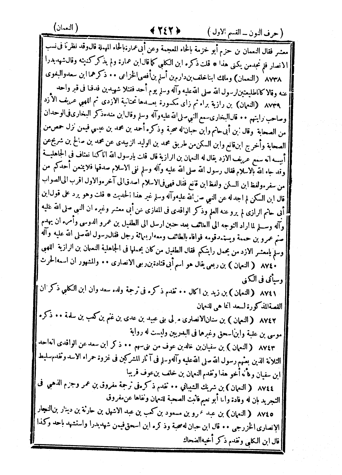 <242> معشر فقال النعمان بن خذمة أبو خذمة بالخاء المعجمة وعن أبي عمارة بالحاء المهملة قال وقد نظرنا في نسب الأنصار فلم نجد من يكنى هذا قلت ذكره بن الكلبي كما قال بن عمارة ولم يذكر كنيته وقال شهد بدرا النعمان ومالك ابنا خلف بن دارم بن أسلم بن أفصى الخزاعي ذكرهما بن سعد والبغوي عنه وقالا كانا طليعتين لرسول الله صلى الله عليه وسلم يوم أحد فقتلا شهيدين فدفنا في قبر واحد النعمان بن رازية براء ثم زاي مكسورة بعدها تحتانية الأزدي ثم اللهبي عريف الأزد وصاحب رايتهم قال البخاري سمع النبي صلى الله عليه وسلم وقال بن منده ذكره البخاري في الوحدان من الصحابة وقال بن أبي حاتم وابن حبان له صحبة وذكره أحمد بن محمد بن عيسى فيمن نزل حمص من الصحابة وأخرج بن قانع وابن السكن من طريق محمد بن الوليد الزبيدي عن محمد بن صالح بن شريح عن أبيه أنه سمع عريف الأزد يقال له النعمان بن الرازية قال قلت يا رسول الله انا كنا نعتاف في الجاهلية وقد جاء الله بالإسلام فقال رسول الله صلى الله عليه وسلم نفى الإسلام صدقها فلا يمنعن أحدكم من سفره لفظ بن السكن ولفظ بن قانع فقال فهي في الإسلام أصدق الى آخره والأول أقرب الى الصواب قال بن السكن لم أجد له عن النبي صلى الله عليه وسلم غير هذا الحديث قلت وهو يرد على قول بن أبي حاتم الرازي لم يرو عنه العلم وذكر الواقدي في في المغازي عن أبي معشر وغيره أن النبي صلى الله عليه وسلم لما أراد التوجه الى الطائف بعد حنين أرسل إلى الطفيل بن عمرو الدوسي وأمره أن يهدم صنم عمرو بن جممة ويستمد قومه فوافاه بالطائف ومعه أربعمائة رجل فقال الطفيل من كان يحملها في الجاهلية النعمان بن الرازية اللهبي النعمان بن ربعي يقال هو اسم أبي قتادة بن ربعي الأنصاري والمشهور أن اسمه الحارث وسيأتي في الكنى النعمان بن زيد بن أكال تقدم ذكره في ترجمة ولده سعد وأن بن الكلبي ذكر أن القصة المذكورة لسعد إنما هي للنعمان النعمان بن سنان الأنصاري مولى بني عبيد بن عدي بن غنم بن كعب بن سلمة ذكره موسى بن عقبة وابن إسحاق وغيرهما في البدريين وليست له رواية النعمان بن سفيان بن خالد بن عوف من بني سهم ذكره بن سعد عن الواقدي انه أحد الثلاثة الذين بعثهم رسول الله صلى الله عليه وسلم في آثار المشركين في غزوة حمراء الأسد وتقدم سليط بن سفيان وكأنه أخو هذا وتقدم النعمان بن خلف بن عون قريبا النعمان بن شريك الشيباني تقدم ذكره في ترجمة مفروق بن عمر وجزم الذهبي في التجريد بأن له وفادة وأما أبو نعيم فأثبت الصحبة للنعمان ونفاها عن مفروق النعمان بن عبد عمرو بن مسعود بن كعب بن عبد الأشهل بن حارثة بن دينار بن النجار الأنصاري الخزرجي قال بن حبان له صحبة وذكره بن إسحاق فيمن شهد بدرا واستشهد بأحد وكذا قال بن الكلبي وتقدم ذكر أخيه الضحاك §