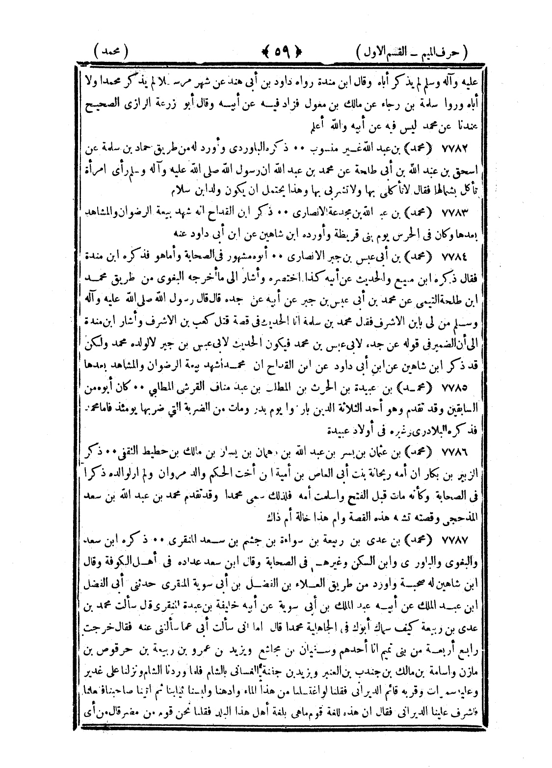 <59> عليه وسلم لم يذكر أباه وقال بن منده رواه داود بن أبي هند عن شهر مرسلا لم يذكر محمدا ولا أباه ورواه سلمة بن رجاء عن مالك بن مغول فزاد فيه عن أبيه وقال أبو زرعة الرازي الصحيح عندنا عن محمد ليس فيه عن أبيه والله أعلم محمد بن عبد الله غير منسوب ذكره الباوردي وأورد له من طريق حماد بن سلمة عن إسحاق بن عبد الله بن أبي طلحة عن محمد بن عبد الله أن رسول الله صلى الله عليه وسلم رأى امرأة تأكل بشمالها فقال لا تأكلي بها ولا تشربي بها وهذا يحتمل أن يكون ولد بن سلام محمد بن عبد الله بن مجدعة الأنصاري ذكر بن القداح أنه شهد بيعة الرضوان والمشاهد بعدها وكان في الحرس يوم بني قريظة وأورده بن شاهين عن بن أبي داود عنه محمد بن أبي عبس بن جبر الأنصاري أبوه مشهور في الصحابة وأما هو فذكره بن منده فقال ذكره بن منيع والحديث عن أبيه كذا اختصره وأشار إلى ما أخرجه البغوي من طريق محمد بن طلحة التيمي عن محمد بن أبي عبس بن جبر عن أبيه عن جده قال قال رسول الله صلى الله عليه وسلم من لي بابن الأشرف فقال محمد بن سلمة أنا الحديث في قصة قتل كعب بن الأشرف وأشار بن منده إلى أن الضمير في قوله عن جده لأبي عبس بن محمد فيكون الحديث لأبي عبس بن جبر لا لولده محمد ولكن قد ذكره بن شاهين عن بن أبي داود عن بن القداح أن محمدا شهد بيعة الرضوان والمشاهد بعدها محمد بن عبيدة بن الحارث بن المطلب بن عبد مناف القرشي المطلبي كان أبوه من السابقين وقد تقدم وهو أحد الثلاثة الذين بارزوا يوم بدر ومات من الضربة التي ضربها يومئذ فأما محمد فذكره البلاذري وغيره في أولاد عبيدة محمد بن عثمان بن بشر بن عبيد بن دهمان بن يسار بن مالك بن حطيط الثقفي ذكر الزبير بن بكار أن أمه ريحانة بنت أبي العاص بن أمية بن أخت الحكم والد مروان ولم أر لوالده ذكرا في الصحابة وكأنه مات قبل الفتح وأسلمت أمه فلذلك سمي محمدا وقد تقدم محمد بن عبد الله بن أبي سعد المذحجي وقصته تشبه هذه القصة وأم هذا خالة أم ذاك محمد بن عدي بن ربيعة بن سواءة بن جشم بن سعد المنقري ذكره بن سعد والبغوي والباوردي وابن السكن وغيرهم في الصحابة وقال بن سعد عداده في أهل الكوفة وقال بن شاهين له صحبة وأورد من طريق العلاء بن ال فضل بن أبي سوية المنقري حدثني أبي الفضل بن عبد الملك عن أبيه عبد الملك بن أبي سوية عن أبيه أبي سوية عن أبيه خليفة بن عبدة المنقري قال سألت محمد بن عدي بن ربيعة كيف سماك أبوك في الجاهلة محمدا قال أما إني سألت أبي عما سألتني عنه فقال خرجت رابع أربعة من بني تميم أنا أحدهم وسفيان بن مجاشع ويزيد بن عمرو بن ربيعة بن حرقوص بن مازن وأسامة بن مالك بن جندب بن العنبر نريد بن جفنة الغساني بالشام فلما وردنا بالشام ونزلنا على غدير وعليه سمرات وقربه قائم الديراني فقلنا لو اغتسلنا من هذا الماء وادهنا ولبسنا ثيابنا ثم أتينا صاحبنا ففعلنا فأشرف علينا الديراني فقال إن هذه للغة قوم ما هي بلغة أهل هذا البلد فقلنا نحن قوم من مضر قال من أي §