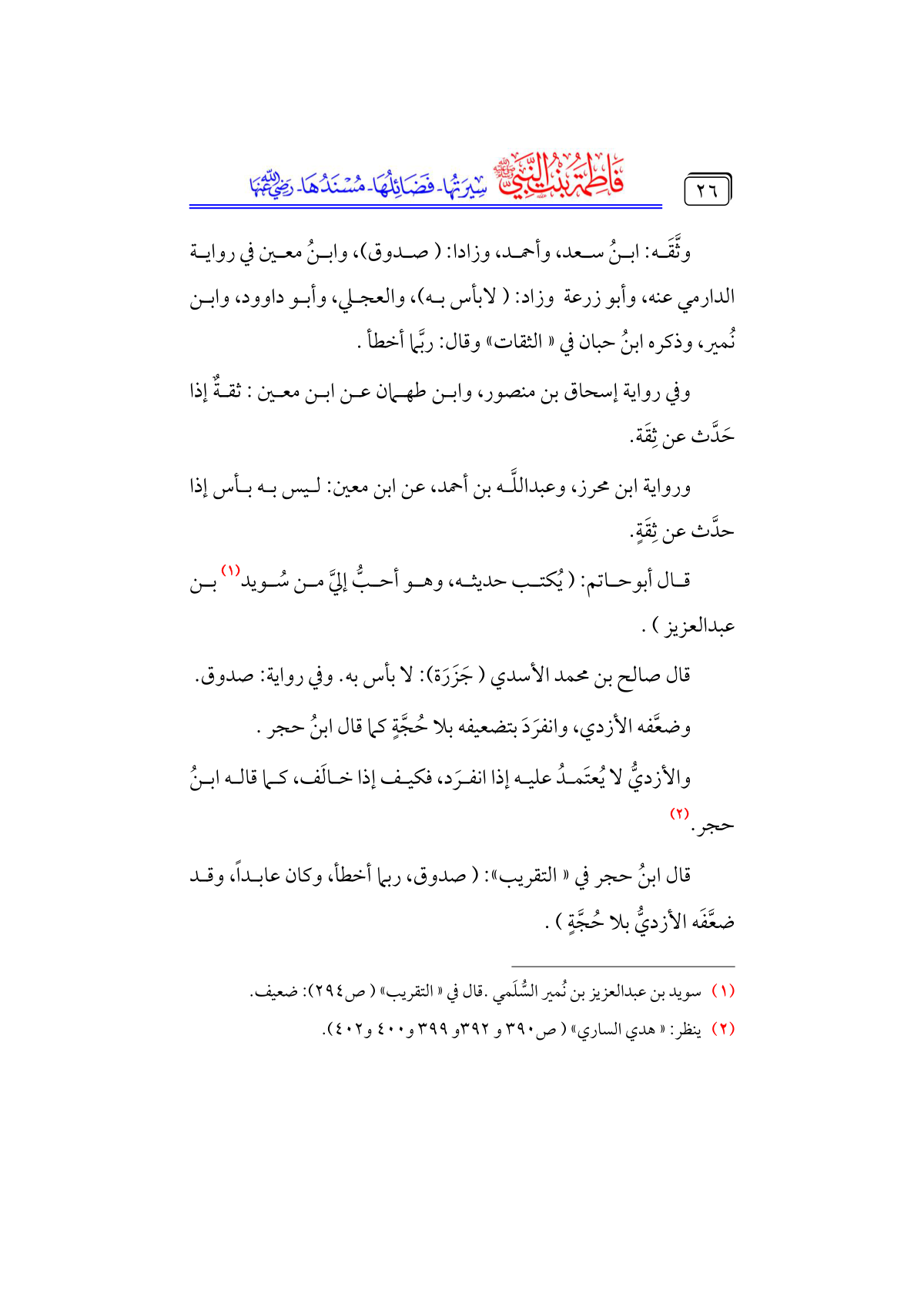 (¬٢) ينظر: «هدي الساري» (ص ٣٩٠ و ٣٩٢ و ٣٩٩ و ٤٠٠ و ٤٠٢).