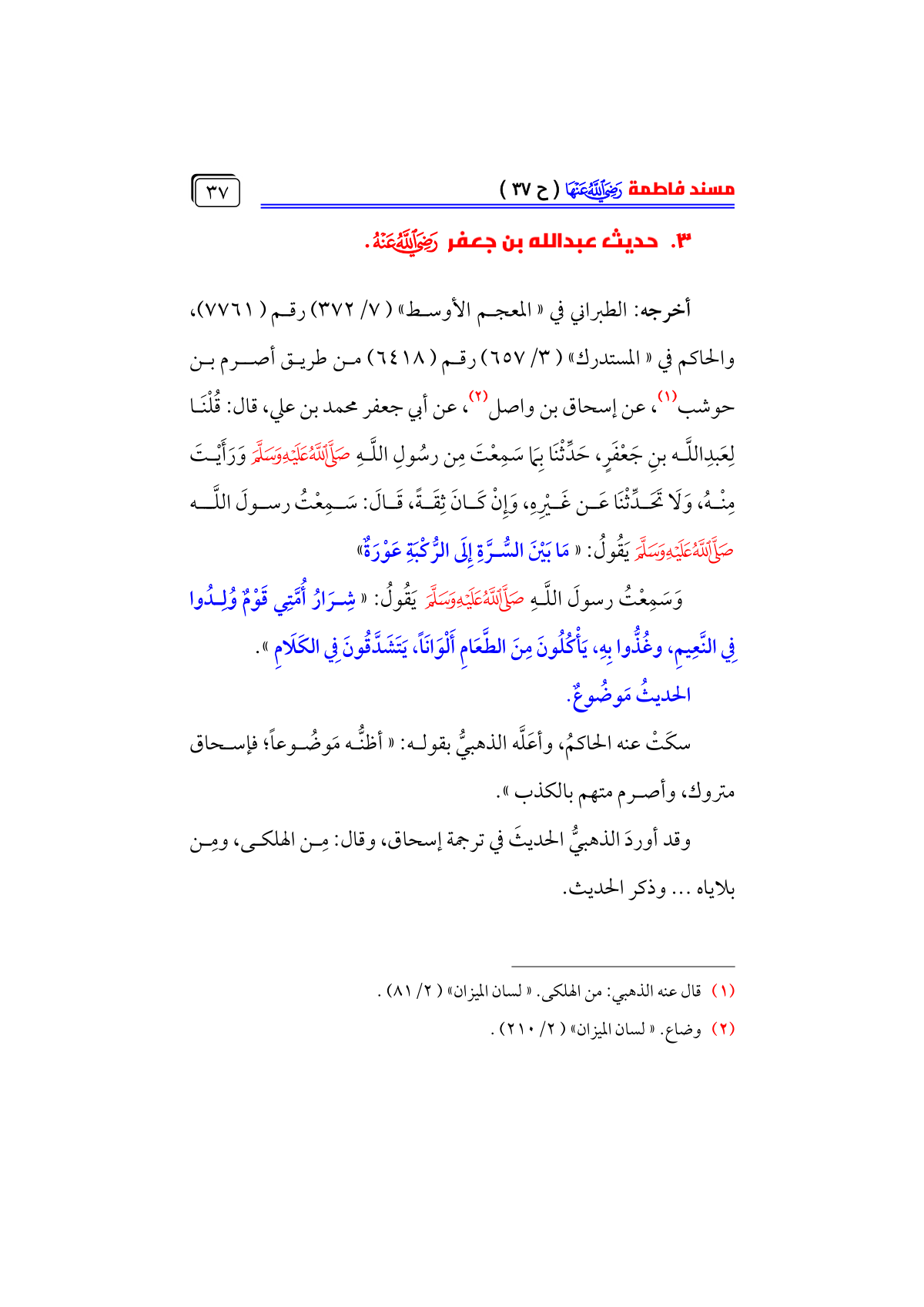 كتاب فاطمة بنت النبي - صلى الله عليه وسلم - سيرتها، فضائلها، مسندها - رضي الله عنها - (اسم الجزء: 7)