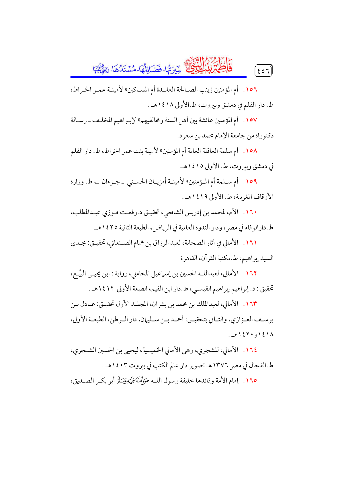 • الأمالي، للشجري، وهي الأمالي الخميسية، ليحيى بن الحسين الشجري، ط. الفجال في مصر ١٣٧٦ هـ تصوير دار عالم الكتب في بيروت ١٤٠٣ هـ.