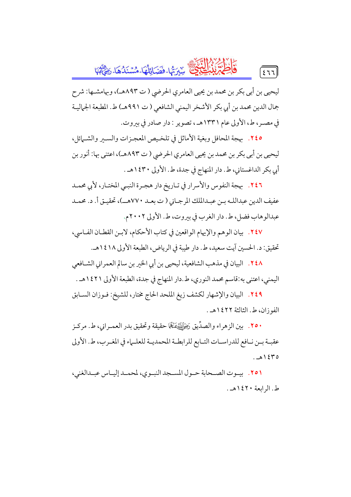 • بين الزهراء والصدِّيق - رضي الله عنهما - حقيقة وتحقيق بدر العمراني، ط. مركز عقبة بن نافع للدراسات التابع للرابطة المحمدية للعلماء في المغرب، ط. الأولى ... ١٤٣٥ هـ.