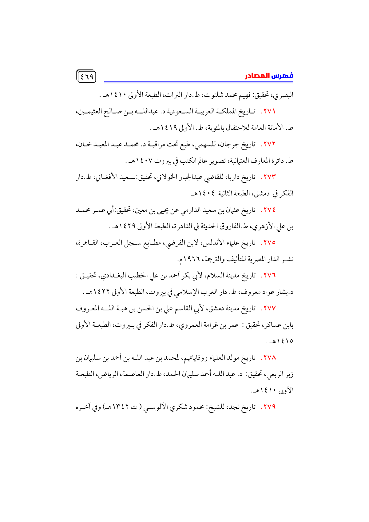 • تاريخ نجد، للشيخ: محمود شكري الآلوسي (ت ١٣٤٢ هـ) وفي آخره