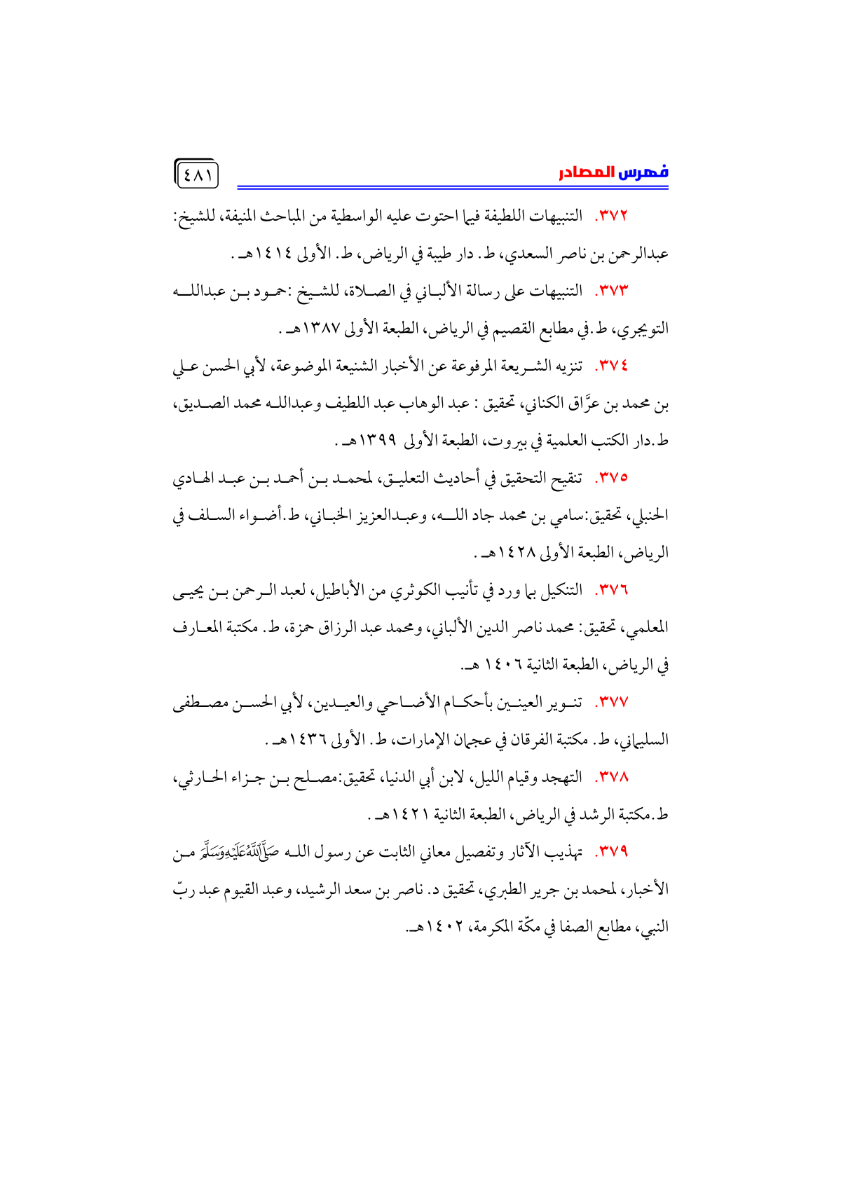 • تنقيح التحقيق في أحاديث التعليق، لمحمد بن أحمد بن عبد الهادي الحنبلي، تحقيق: سامي بن محمد جاد الله، وعبدالعزيز الخباني، ط. أضواء السلف في الرياض، الطبعة الأولى ١٤٢٨ هـ.