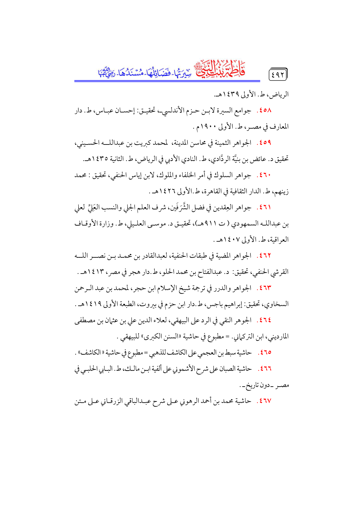 • جواهر السلوك في أمر الخلفاء والملوك، لابن إياس الحنفي، تحقيق: محمد زينهم، ط. الدار الثقافية في القاهرة، ط. الأولى ١٤٢٦ هـ.