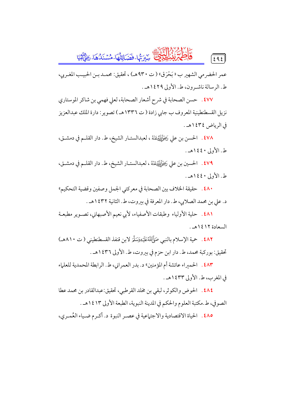• حمية الإسلام بالنبي - صلى الله عليه وسلم - لابن قنفذ القسطنطيني (ت ٨١٠ هـ) تحقيق: بوركبة محمد، ط. دار ابن حزم في بيروت، ط. الأولى ١٤٣٦ هـ.