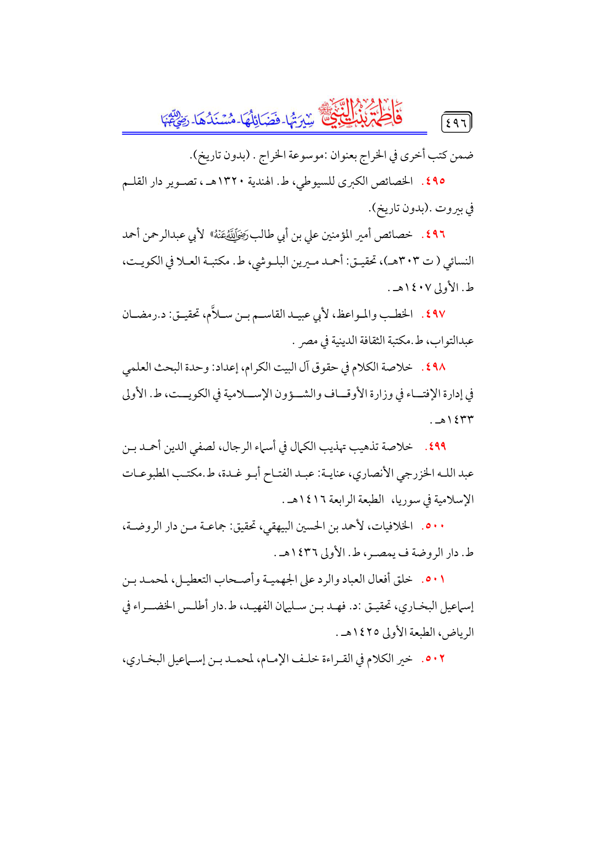 • خلاصة الكلام في حقوق آل البيت الكرام، إعداد: وحدة البحث العلمي في إدارة الإفتاء في وزارة الأوقاف والشؤون الإسلامية في الكويت، ط. الأولى ... ١٤٣٣ هـ.