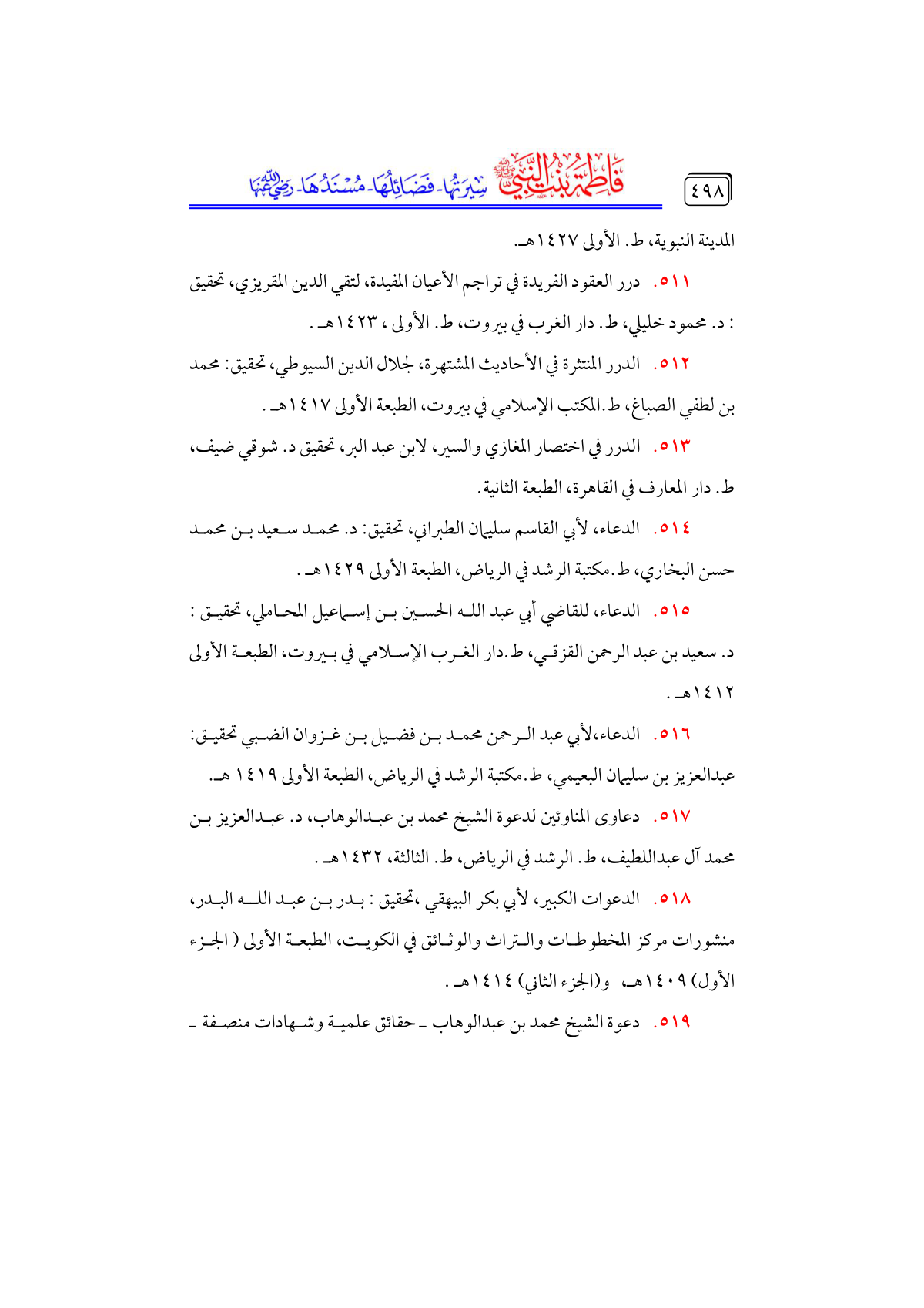 المدينة النبوية، ط. الأولى ١٤٢٧ هـ.