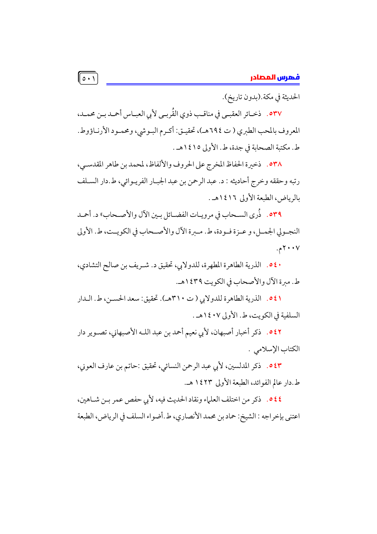 • الذرية الطاهرة للدولابي (ت ٣١٠ هـ). تحقيق: سعد الحسن، ط. الدار السلفية في الكويت، ط. الأولى ١٤٠٧ هـ.