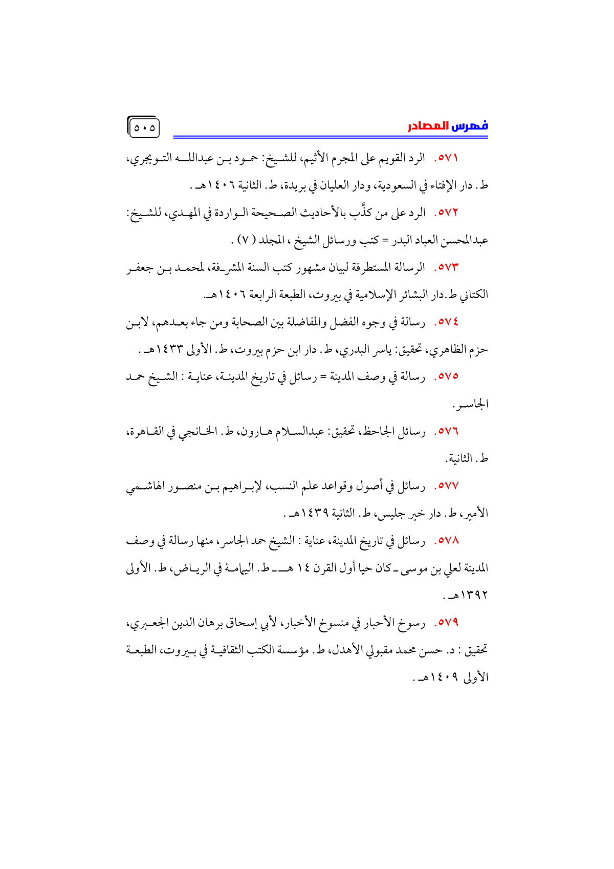 • رسالة في وصف المدينة = رسائل في تاريخ المدينة، عناية: الشيخ حمد الجاسر.