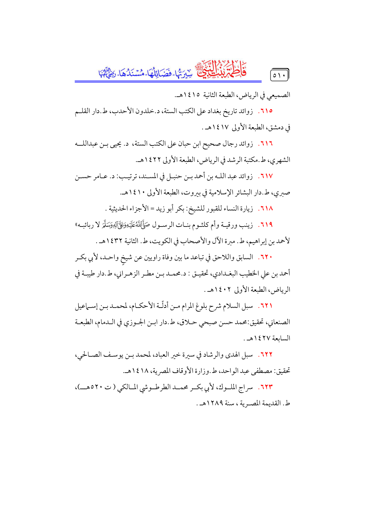 كتاب فاطمة بنت النبي - صلى الله عليه وسلم - سيرتها، فضائلها، مسندها - رضي الله عنها - (اسم الجزء: 7)