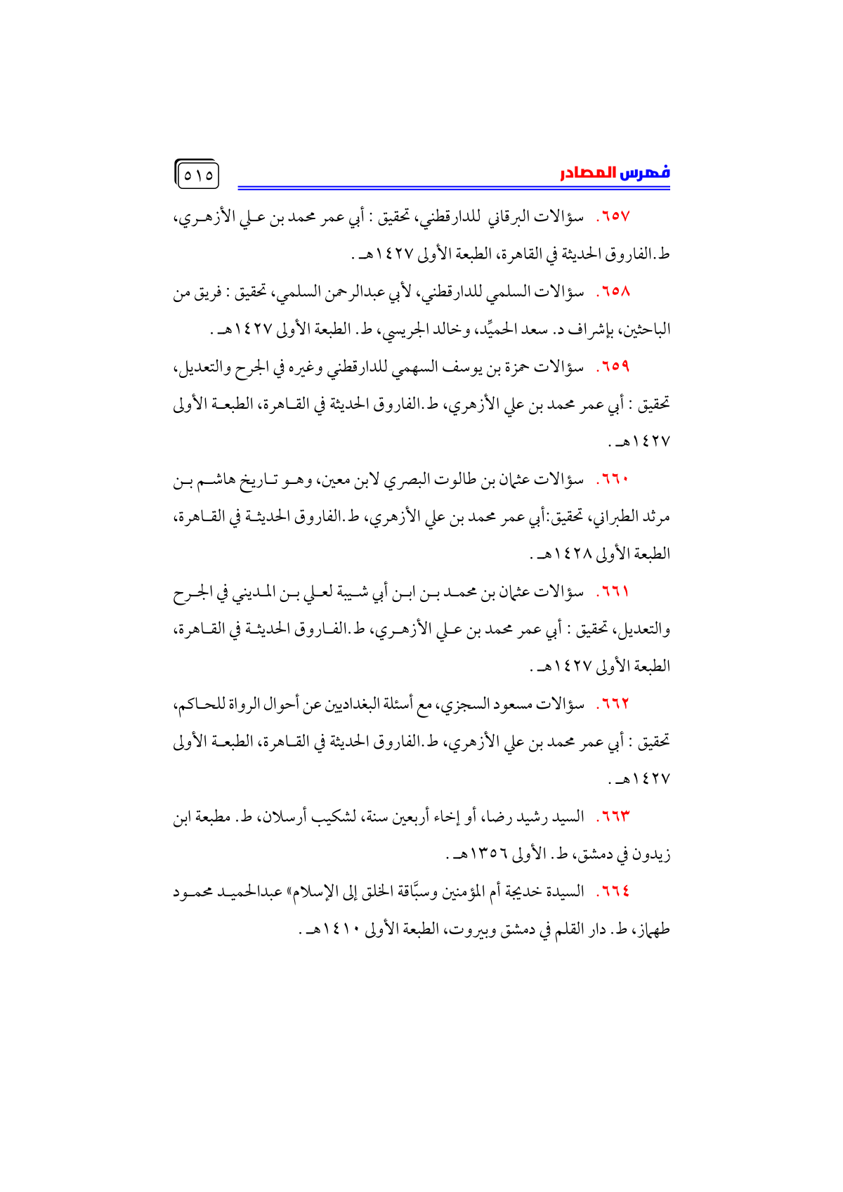 • سؤالات السلمي للدارقطني، لأبي عبدالرحمن السلمي، تحقيق: فريق من الباحثين، بإشراف د. سعد الحميِّد، وخالد الجريسي، ط. الطبعة الأولى ١٤٢٧ هـ.