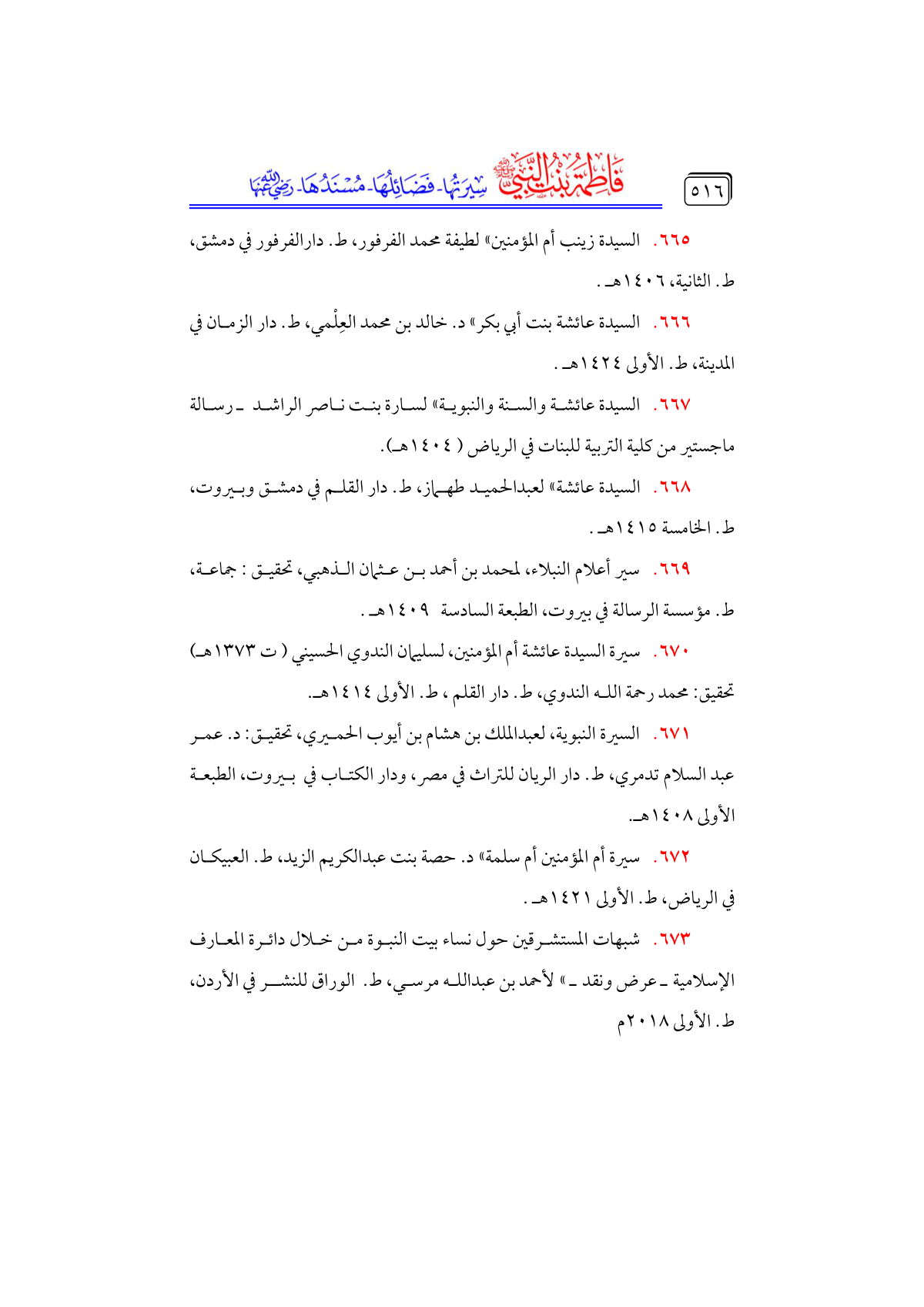 • سيرة السيدة عائشة أم المؤمنين، لسليمان الندوي الحسيني (ت ١٣٧٣ هـ) تحقيق: محمد رحمة الله الندوي، ط. دار القلم، ط. الأولى ١٤١٤ هـ.