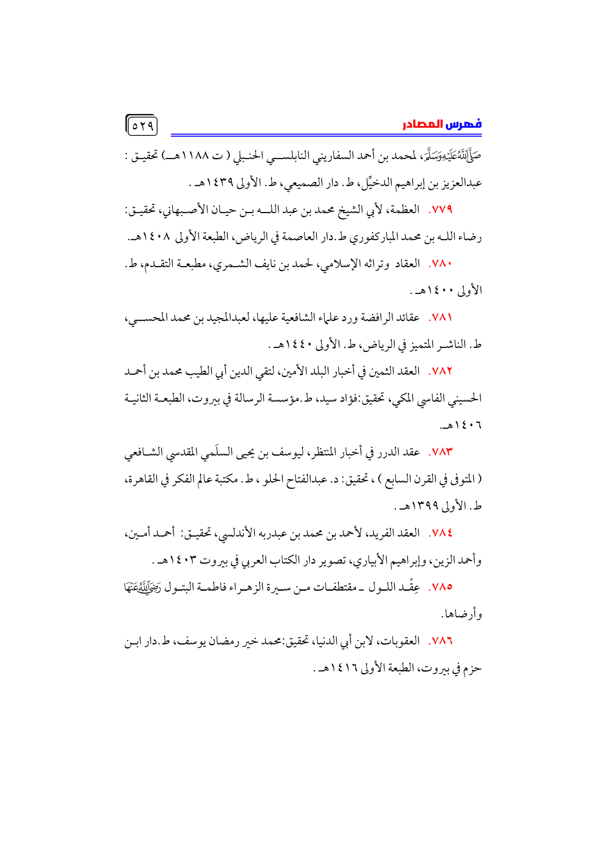 • عقد الدرر في أخبار المنتظر، ليوسف بن يحيى السلَمي المقدسي الشافعي ... (المتوفى في القرن السابع)، تحقيق: د. عبدالفتاح الحلو، ط. مكتبة عالم الفكر في القاهرة، ط. الأولى ١٣٩٩ هـ.