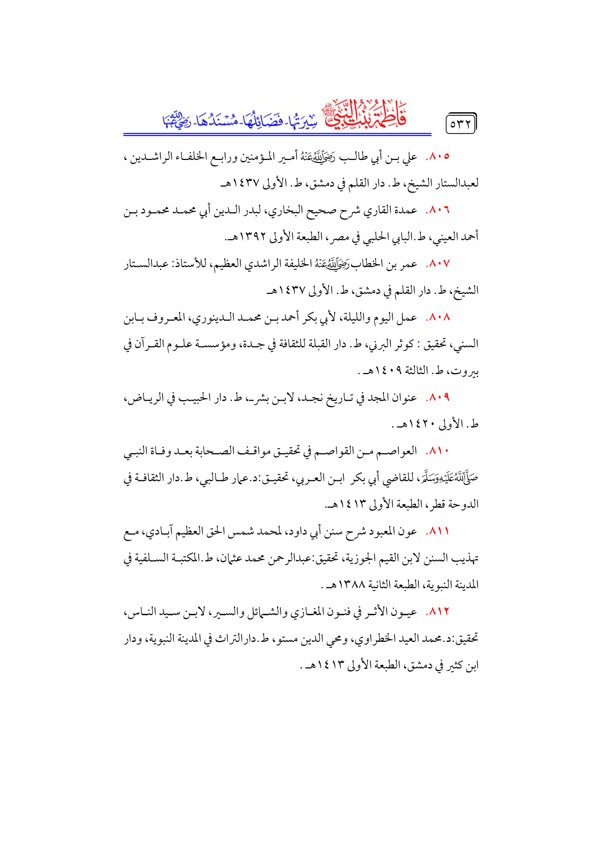 • علي بن أبي طالب - رضي الله عنه - أمير المؤمنين ورابع الخلفاء الراشدين، لعبدالستار الشيخ، ط. دار القلم في دمشق، ط. الأولى ١٤٣٧ هـ