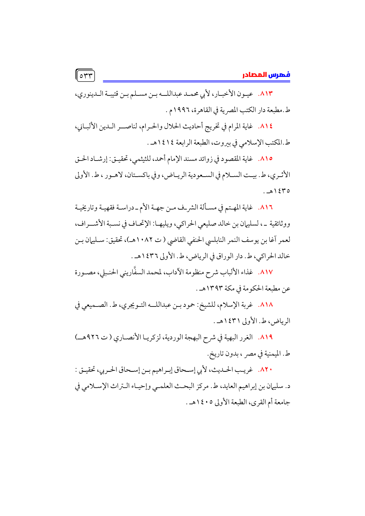 • غذاء الألباب شرح منظومة الآداب، لمحمد السفَّاريني الحنبلي، مصورة عن مطبعة الحكومة في مكة ١٣٩٣ هـ.