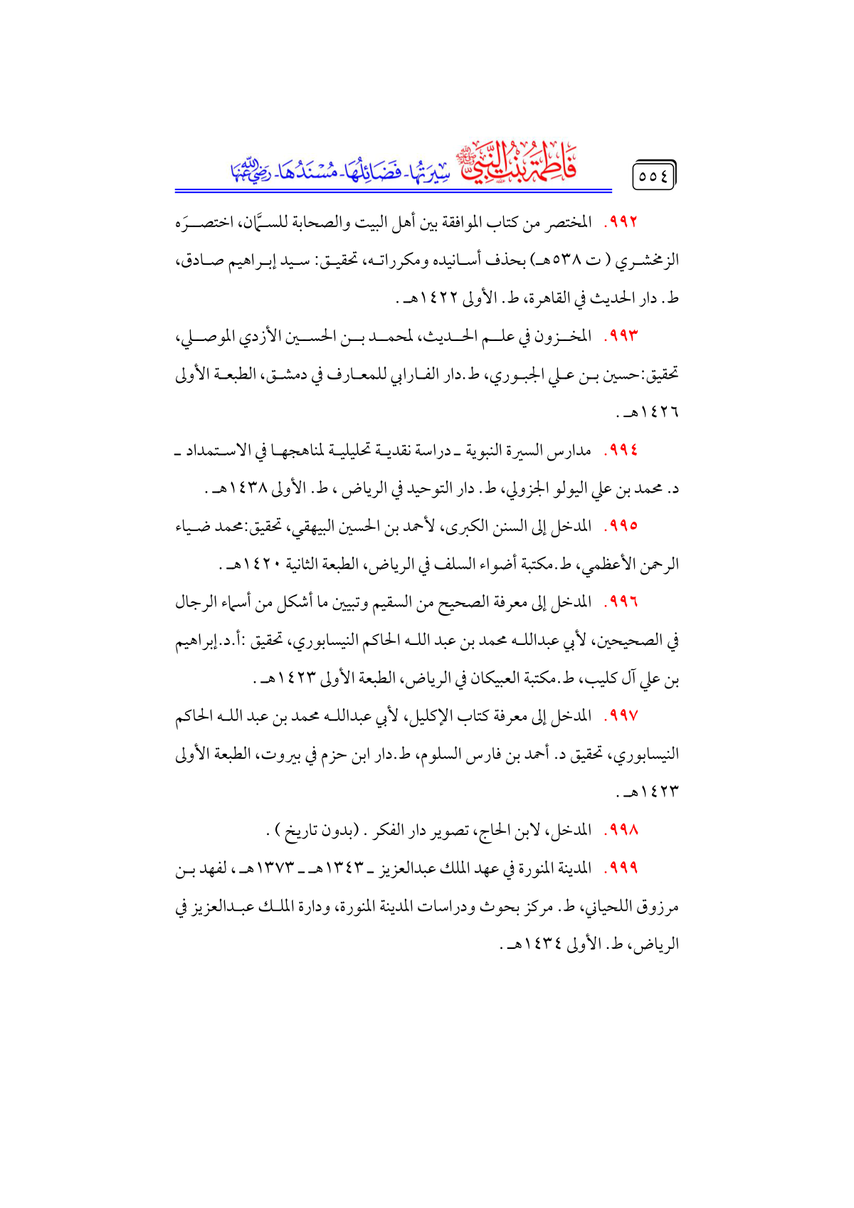 • المدخل إلى معرفة كتاب الإكليل، لأبي عبدالله محمد بن عبد الله الحاكم النيسابوري، تحقيق د. أحمد بن فارس السلوم، ط. دار ابن حزم في بيروت، الطبعة الأولى ١٤٢٣ هـ.