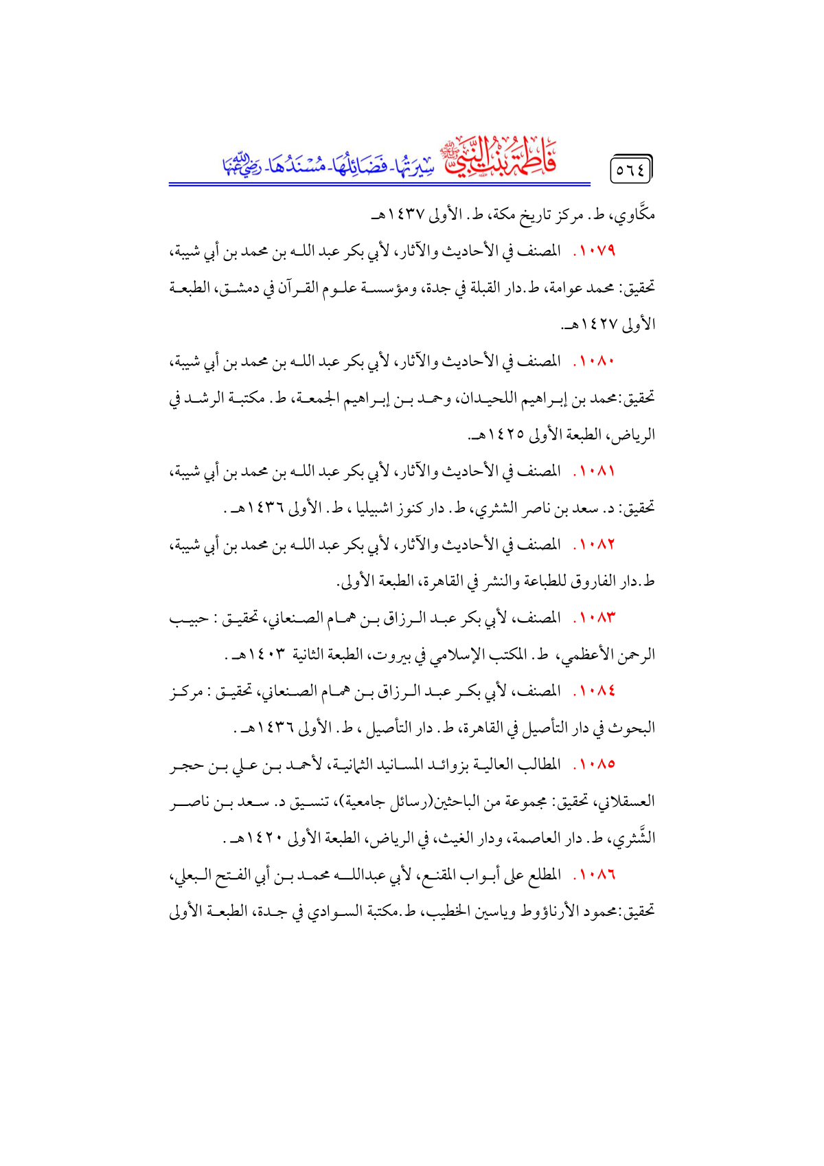 • المصنف في الأحاديث والآثار، لأبي بكر عبد الله بن محمد بن أبي شيبة، تحقيق: د. سعد بن ناصر الشثري، ط. دار كنوز اشبيليا، ط. الأولى ١٤٣٦ هـ.
