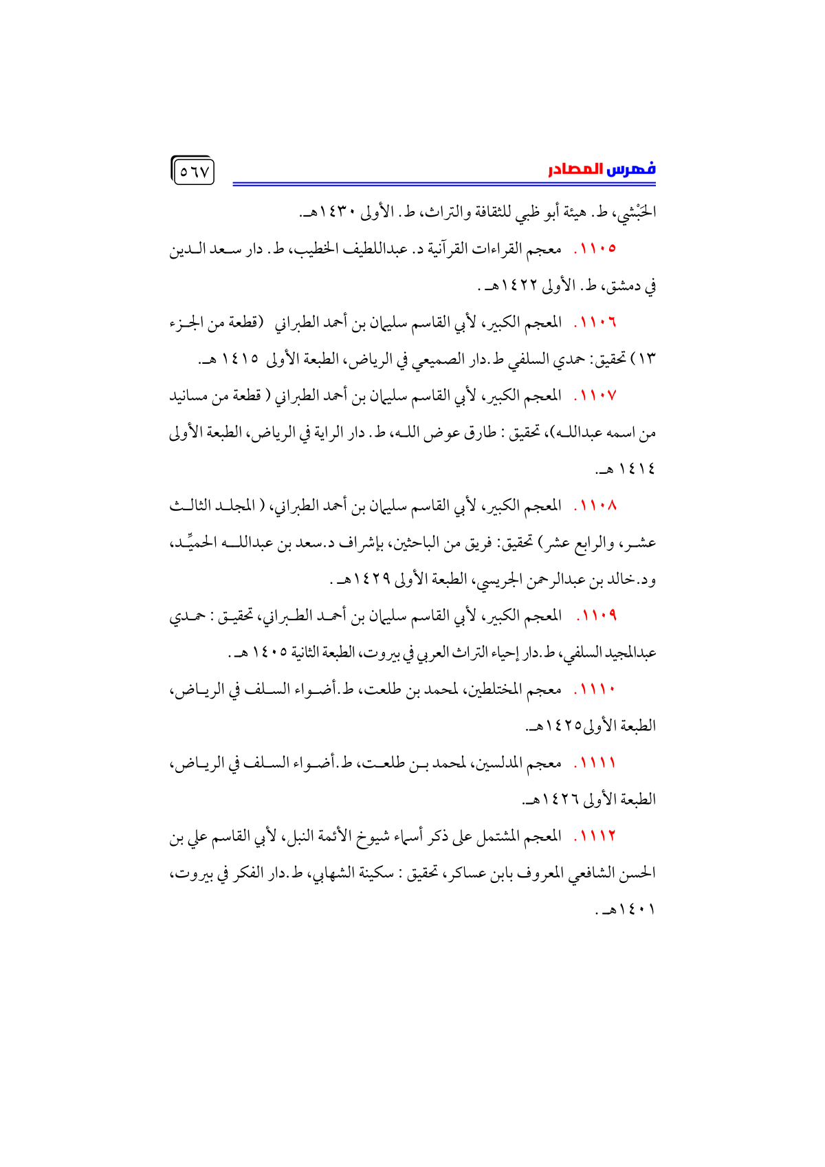 • المعجم الكبير، لأبي القاسم سليمان بن أحمد الطبراني (قطعة من الجزء ١٣) تحقيق: حمدي السلفي ط. دار الصميعي في الرياض، الطبعة الأولى ١٤١٥ هـ.