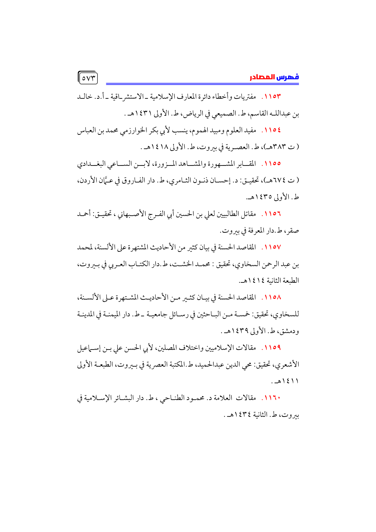 • مفيد العلوم ومبيد الهموم، ينسب لأبي بكر الخوارزمي محمد بن العباس ... (ت ٣٨٣ هـ)، ط. العصرية في بيروت، ط. الأولى ١٤١٨ هـ.