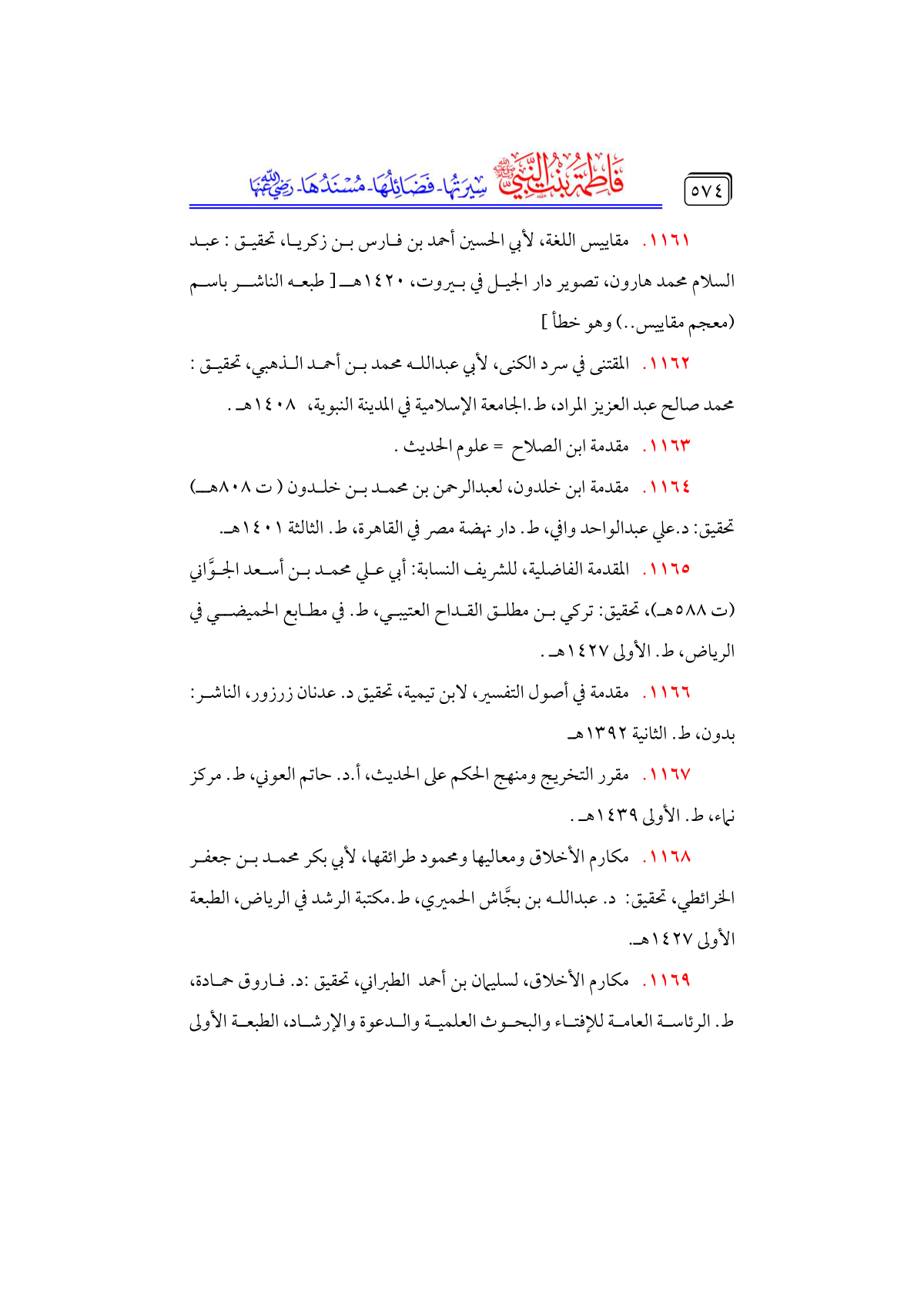 • مقدمة ابن خلدون، لعبدالرحمن بن محمد بن خلدون (ت ٨٠٨ هـ) تحقيق: د. علي عبدالواحد وافي، ط. دار نهضة مصر في القاهرة، ط. الثالثة ١٤٠١ هـ.