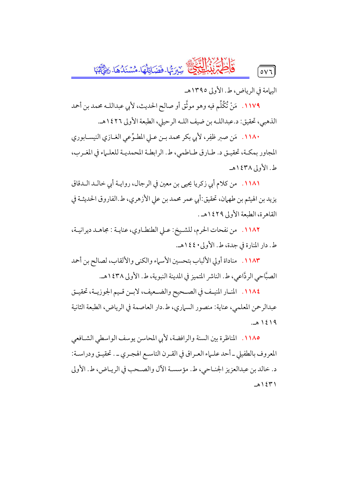 • المنار المنيف في الصحيح والضعيف، لابن قيم الجوزية، تحقيق عبدالرحمن المعلمي، عناية: منصور السماري، ط. دار العاصمة في الرياض، الطبعة الثانية ١٤١٩ هـ.