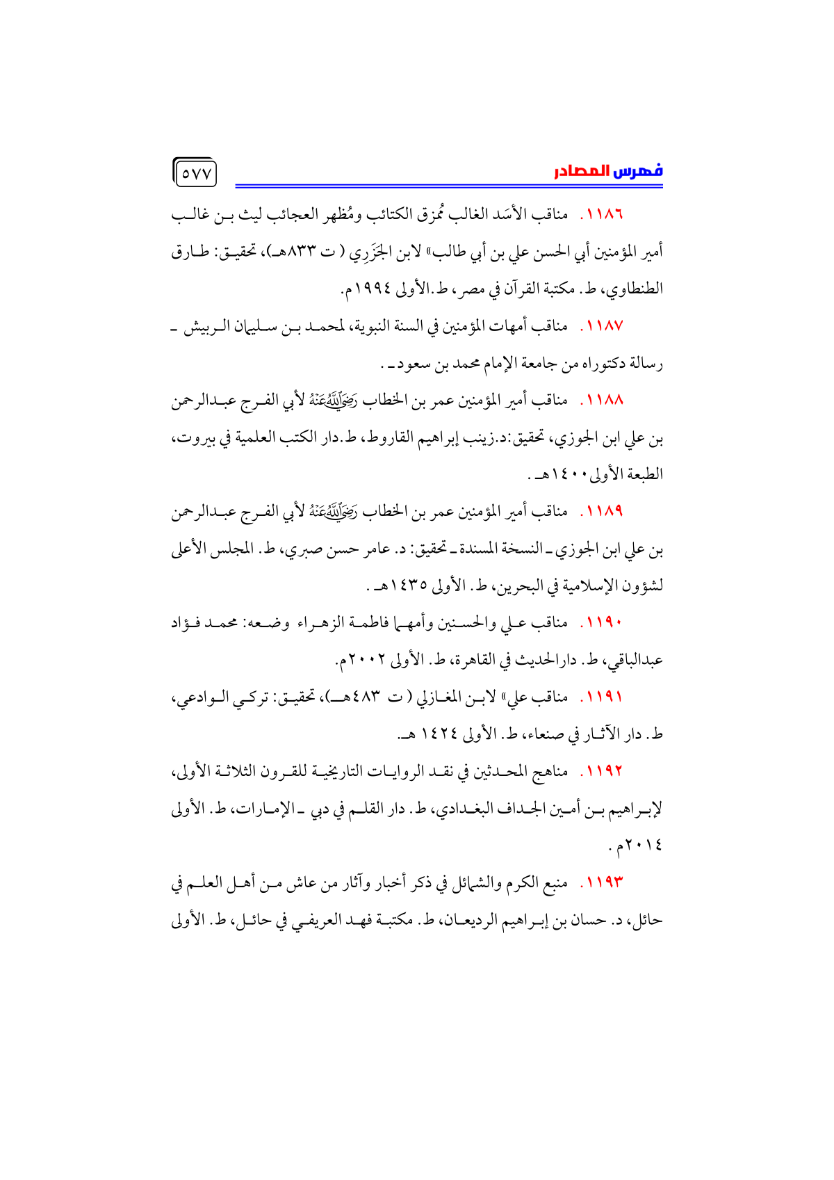 • مناقب أمير المؤمنين عمر بن الخطاب - رضي الله عنه - لأبي الفرج عبدالرحمن بن علي ابن الجوزي ـ النسخة المسندة ـ تحقيق: د. عامر حسن صبري، ط. المجلس الأعلى لشؤون الإسلامية في البحرين، ط. الأولى ١٤٣٥ هـ.