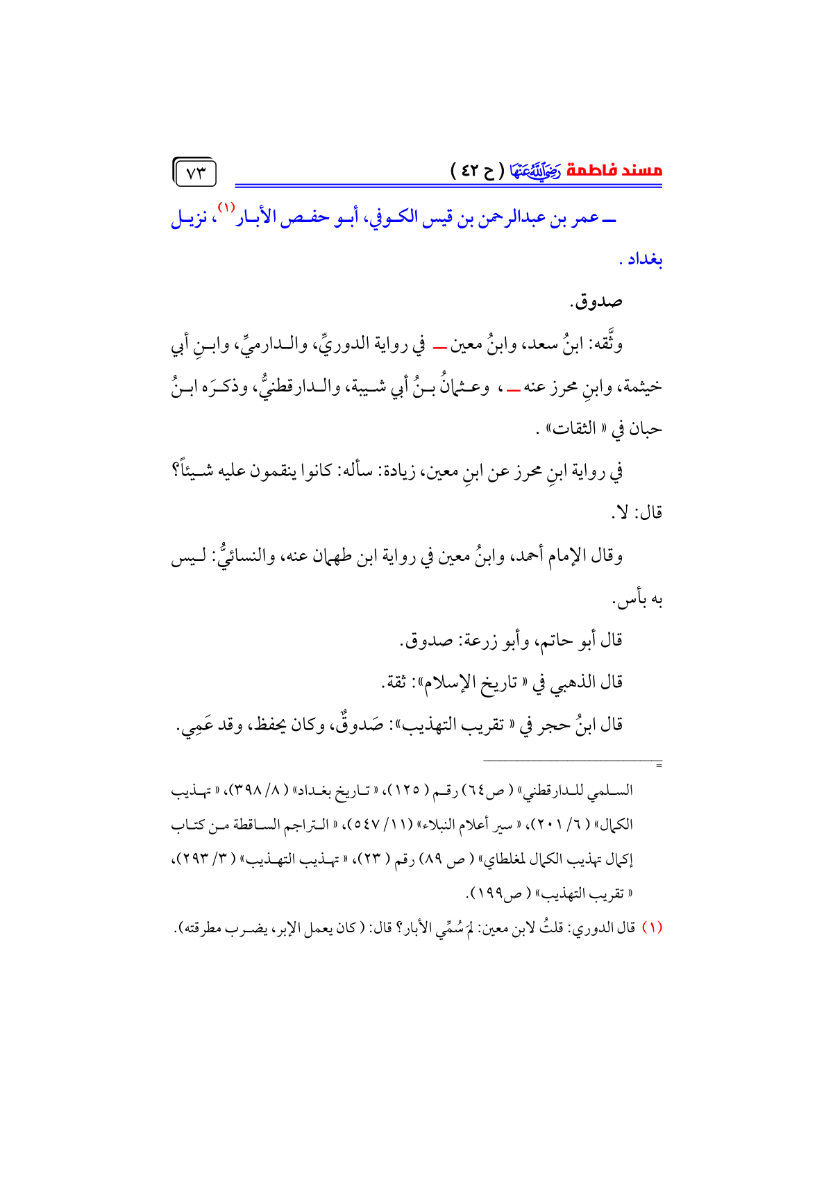(¬١) قال الدوري: قلتُ لابن معين: لمَ سُمِّي الأبار؟ قال: (كان يعمل الإبر، يضرب مطرقته).