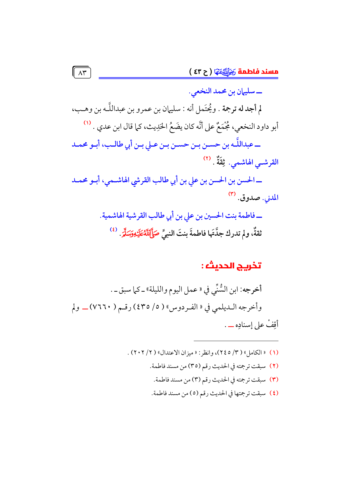 (¬٣) سبقت ترجمته في الحديث رقم (٣) من مسند فاطمة.