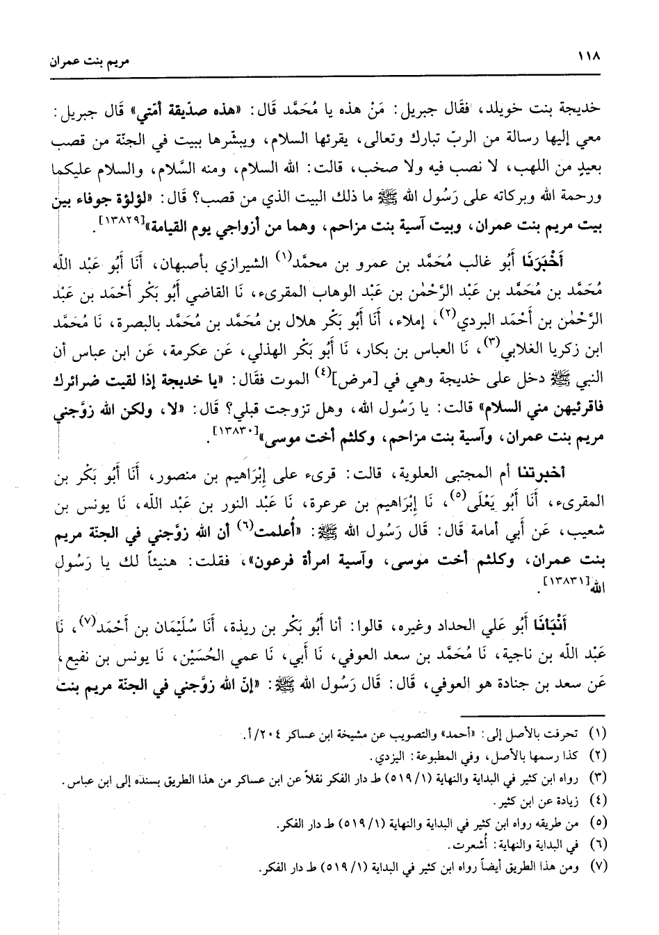 أنبأنا أبو علي الحداد وغيره قالوا أنا أبو بكر بن ريذة أنا سليمان بن أحمد (7) نا عبد الله بن ناجية نا محمد بن سعد العوفي نا أبي نا عمي الحسين نا يونس بن نفيع عن سعد بن جنادة هو العوفي قال قال رسول الله (صلى الله عليه وسلم) " إن الله زوجني في الجنة مريم بنت