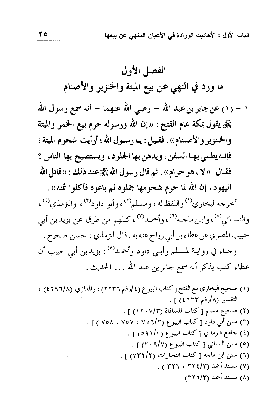 الفصل الأول ما ورد في النهي عن بيع الميتة والخنزير والأصنام