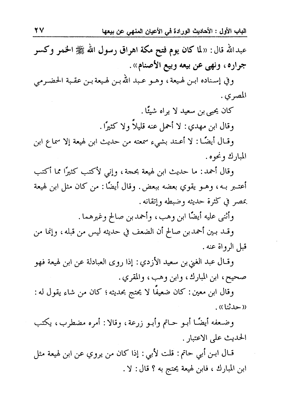 قال ابن أبي حاتم: قلت لأبي: إذا كان من يروي عن ابن لهيعة مثل ابن المبارك، فابن لهيعة يحتج به؟ قال: لا.