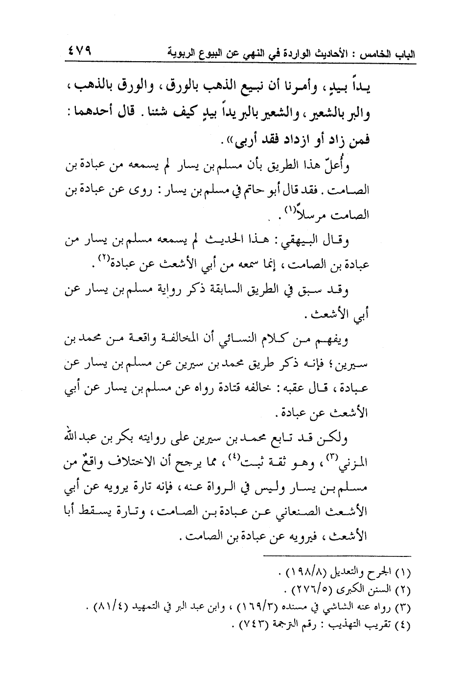 وأُعلّ هذا الطريق بأن مسلم بن يسار لم يسمعه من عبادة بن الصامت. فقد قال أبو حاتم في مسلم بن يسار: روى عن عبادة بن الصامت مرسلاً1.