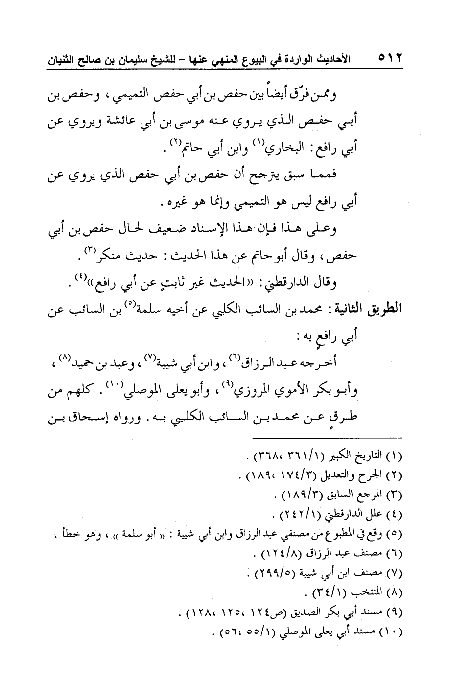 فمما سبق يترجح أن حفص بن أبي حفص الذي يروي عن أبي رافع ليس هو التميمي وإنما هو غيره.