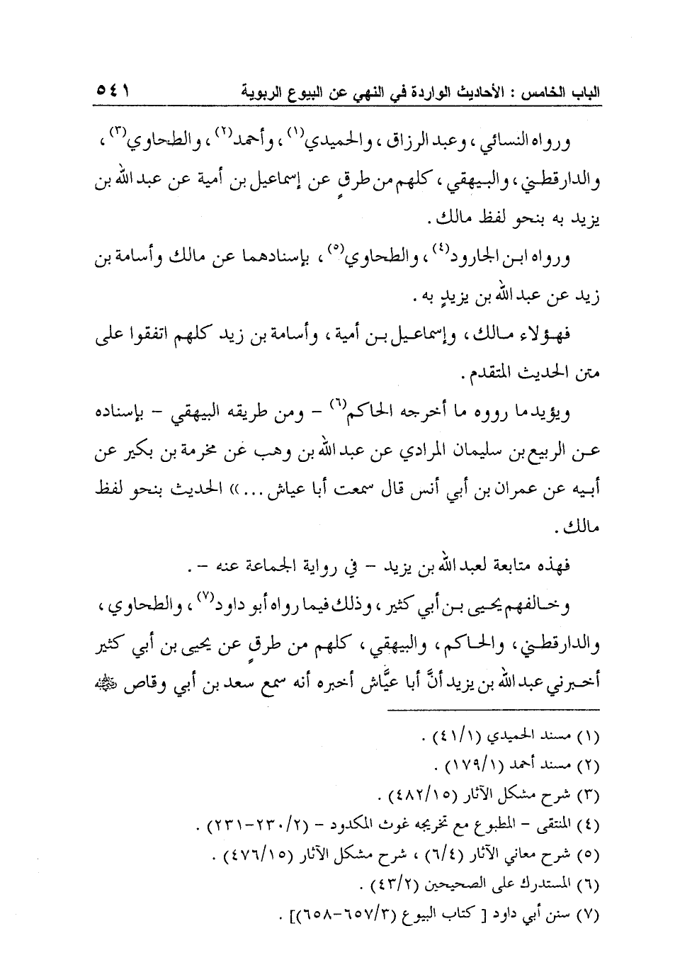 وخالفهم يحيى بن أبي كثير، وذلك فيما رواه أبو داود7، والطحاوي، والدارقطني، والحاكم، والبيهقي، كلهم من طرقٍ عن يحيى بن أبي كثير أخبرني عبد الله بن يزيد أنَّ أبا عيَّاش أخبره أنه سمع سعد بن أبي وقاص رضي الله عنه