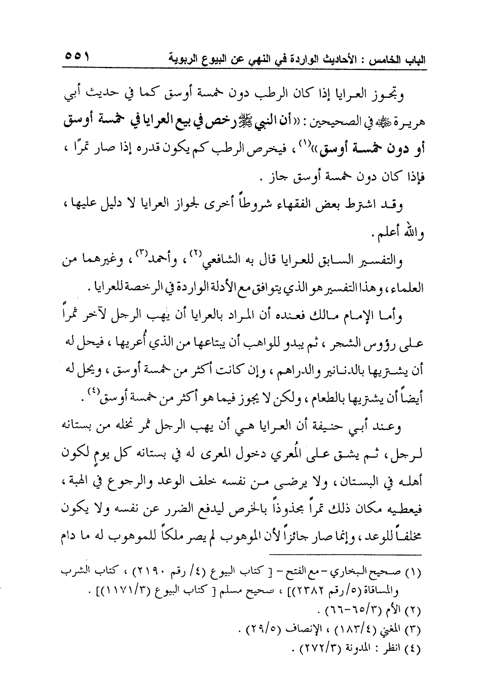 والتفسير السابق للعرايا قال به الشافعي2، وأحمد3، وغيرهما من العلماء، وهذا التفسير هو الذي يتوافق مع الأدلة الواردة في الرخصة للعرايا.