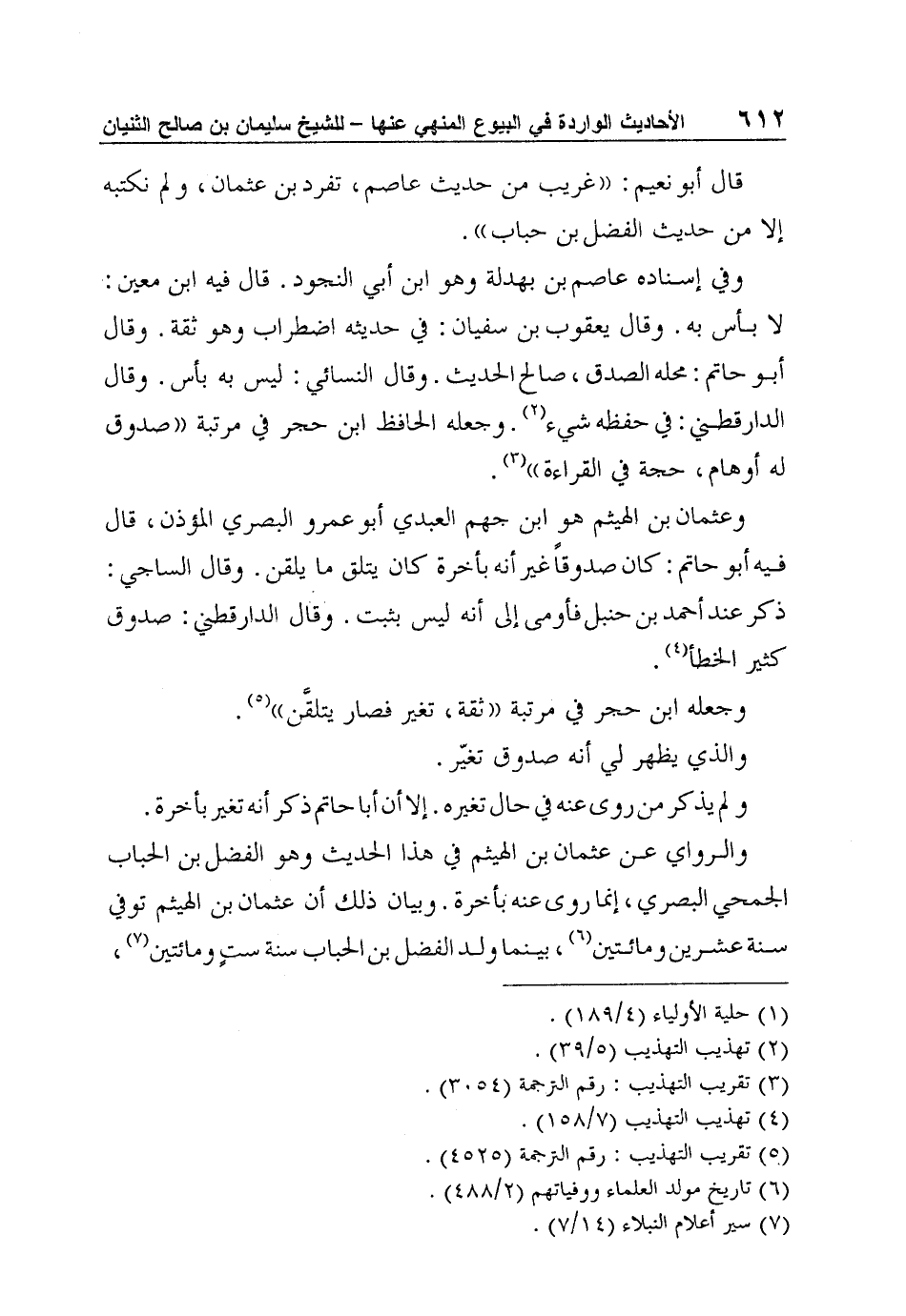 قال أبو نعيم: "غريب من حديث عاصم، تفرد بن عثمان، ولم نكتبه إلا من حديث الفضل بن حباب".