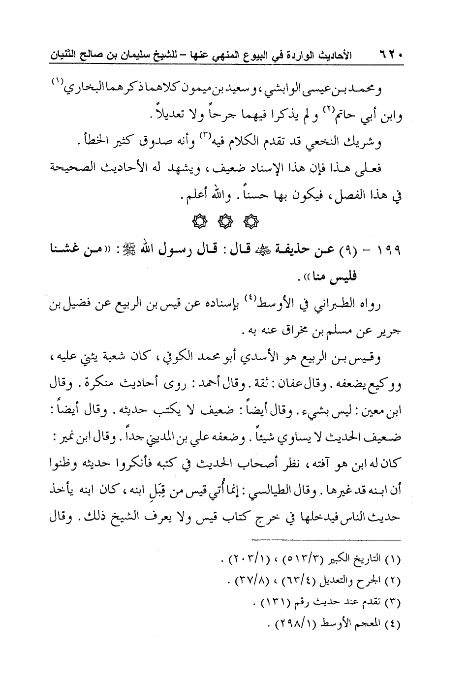 199 - (9) عن حذيفة رضي الله عنه قال: قال رسول الله صلى الله عليه وسلم: "من غشنا فليس منا".