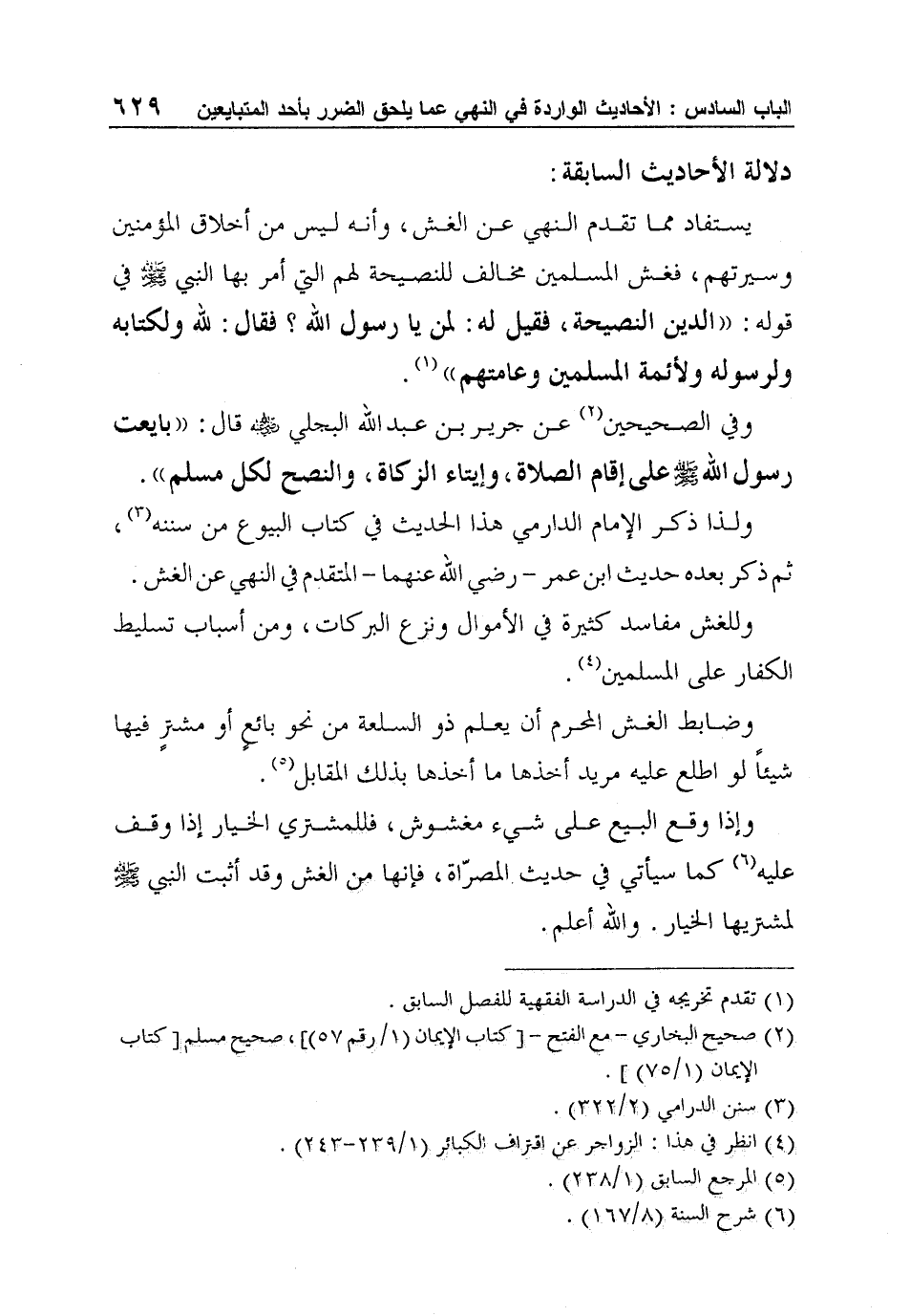 ولذا ذكر الإمام الدارمي هذا الحديث في كتاب البيوع من سننه3، ثم ذكر بعده حديث ابن عمر - رضي الله عنهما - المتقدم في النهي عن الغش.