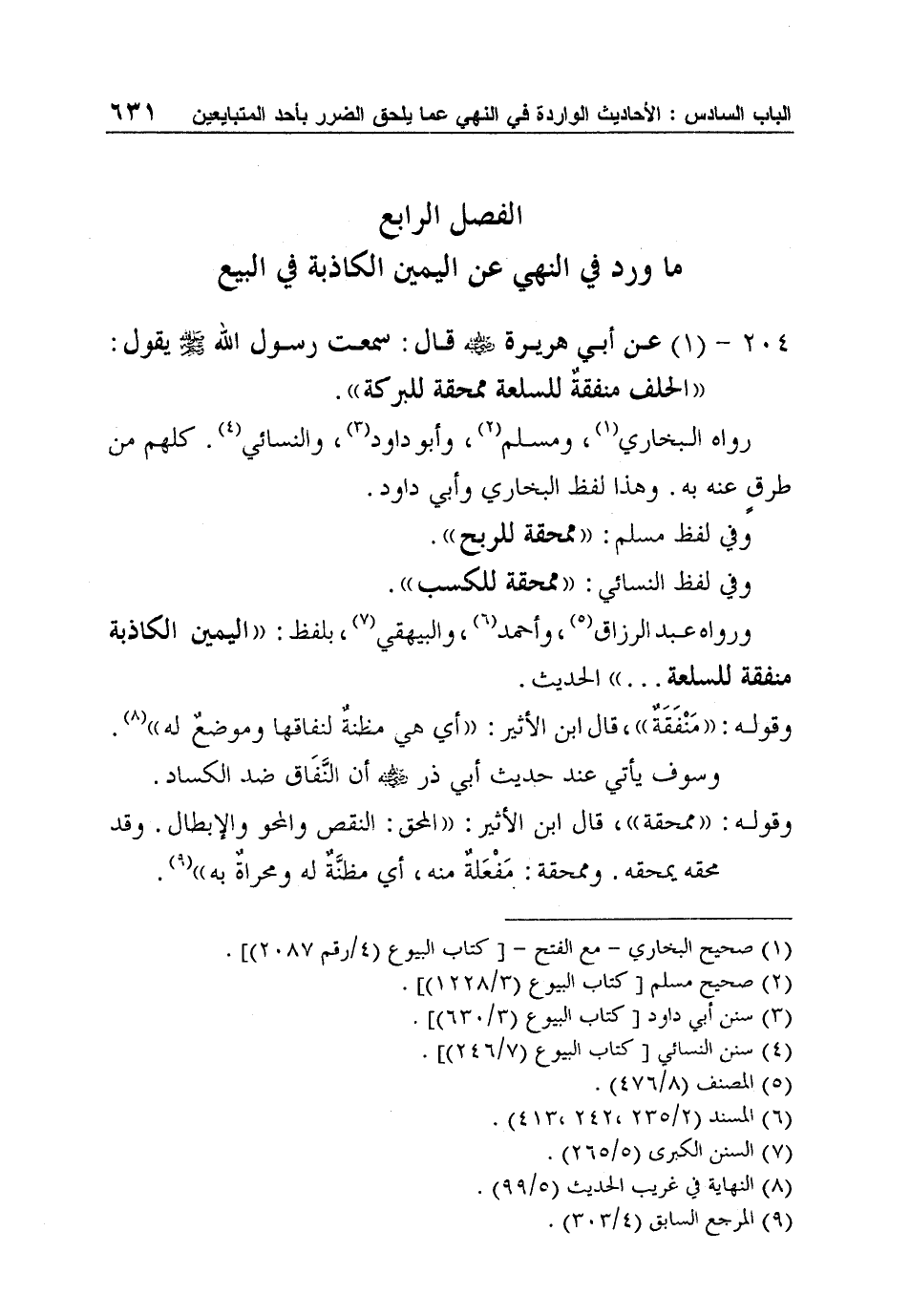 الفصل الرابع: ورد في النهي عن اليمين الكاذبة في البيع