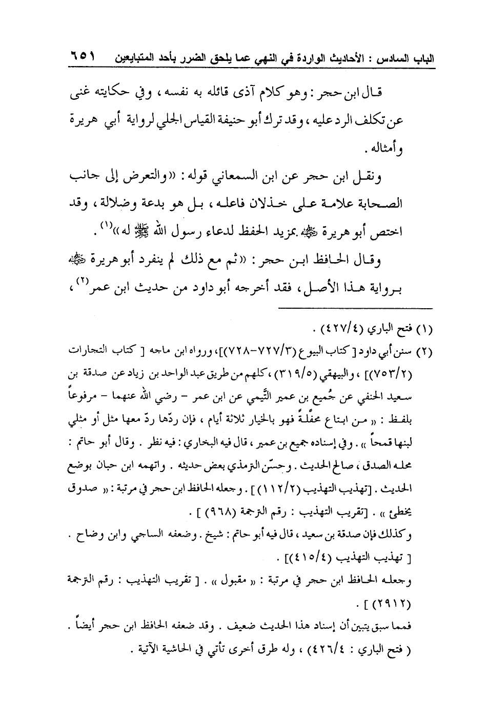 وقال الحافظ ابن حجر: "ثم مع ذلك لم ينفرد أبو هريرة رضي الله عنه برواية هذا الأصل، فقد أخرجه أبو داود من حديث ابن عمر2،