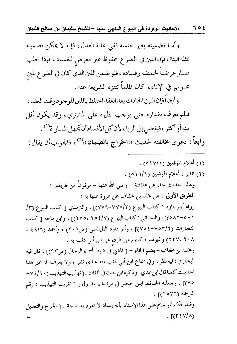 رابعاً: دعوى مخالفته لحديث "الخراج بالضمان"2، فالجواب أن يقال: