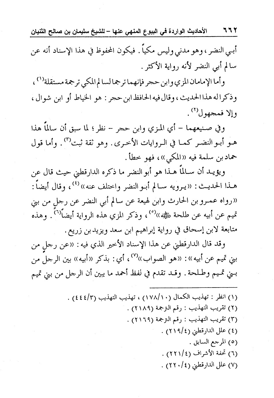 وفي صنيعهما - أي المزي وابن حجر - نظر؛ لما سبق أن سالماً هذا هو أبو النضر كما في الروايات الأخرى. وهو ثقة ثبت3. وأما قول حماد بن سلمة فيه "المكي"، فهو خطأ.