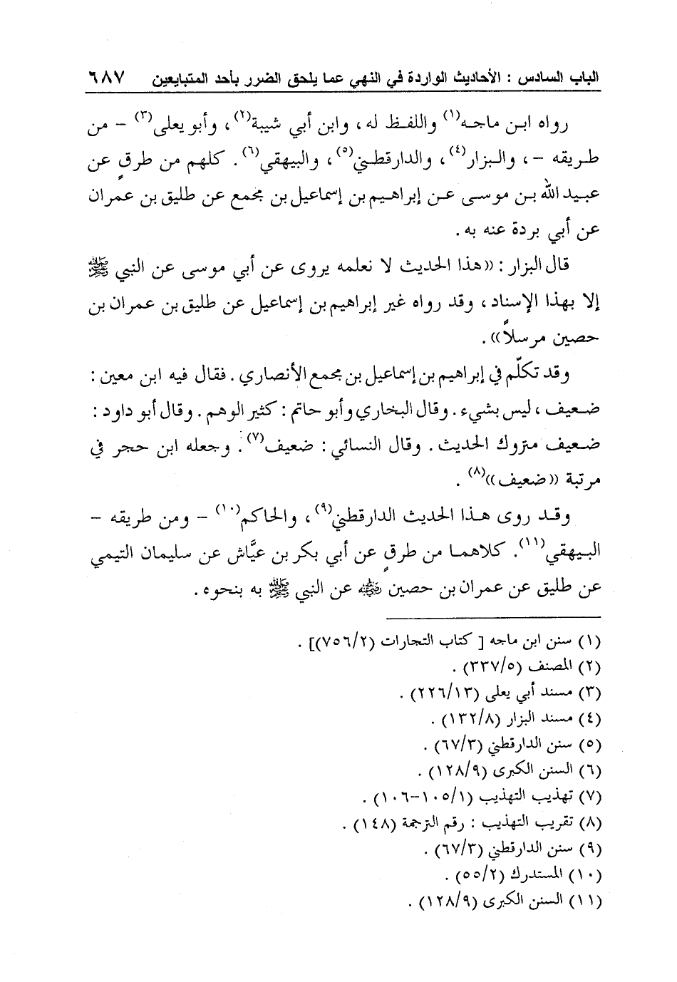 وقد روى هذا الحديث الدارقطني9، والحاكم10 - ومن طريقه - البيهقي11. كلاهما من طرقٍ عن أبي بكر بن عيَّاش عن سليمان التيمي عن طليق عن عمران بن حصين رضي الله عنه عن النبي صلى الله عليه وسلم به بنحوه.