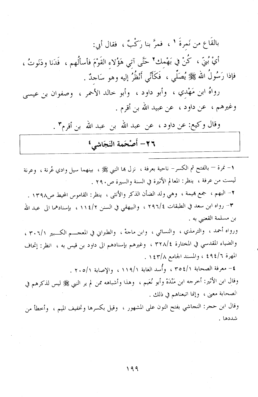 بالقاع من نمرة، فمر بنا ركب، فقال أبي: أي بني، كن في بهمك حتى آتى هؤلاء القوم فأسألهم، فدنا ودنوت، فإذا رسول الله صلى الله عليه وسلم يصلي، فكأني أنظر إليه وهو ساجد.