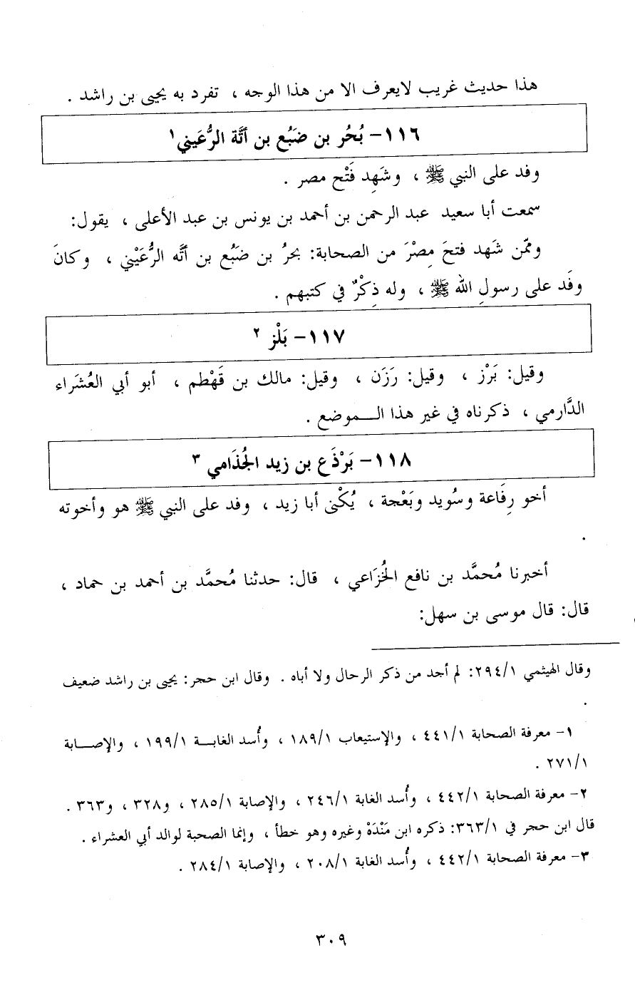 سمعت أبا سعيد عبد الرحمن بن أحمد بن يونس بن عبد الأعلى، يقول: وممن شهد فتح مصر من الصحابة: بحر بن ضبع بن أته الرعيني، وكان وفد على رسول الله صلى الله عليه وسلم، وله ذكر في كتبهم.