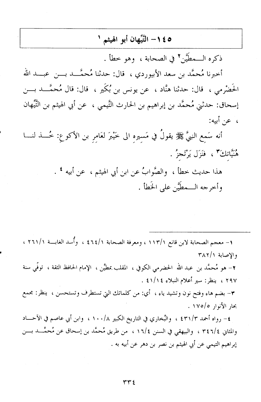 أخبرنا محمد بن سعد الأبيوردي، قال: حدثنا محمد بن عبد الله الحضرمي، قال: حدثنا هناد، عن يونس بن بكير، قال: قال محمد بن إسحاق: حدثني محمد بن إبراهيم بن الحارث التيمي، عن أبي الهيثم بن التيهان، عن أبيه: أنه سمع النبي صلى الله عليه وسلم يقول في مسيره إلى خيبر لعام بن الأكوع: خذ لنا هنياتك، فنزل يرتجز.