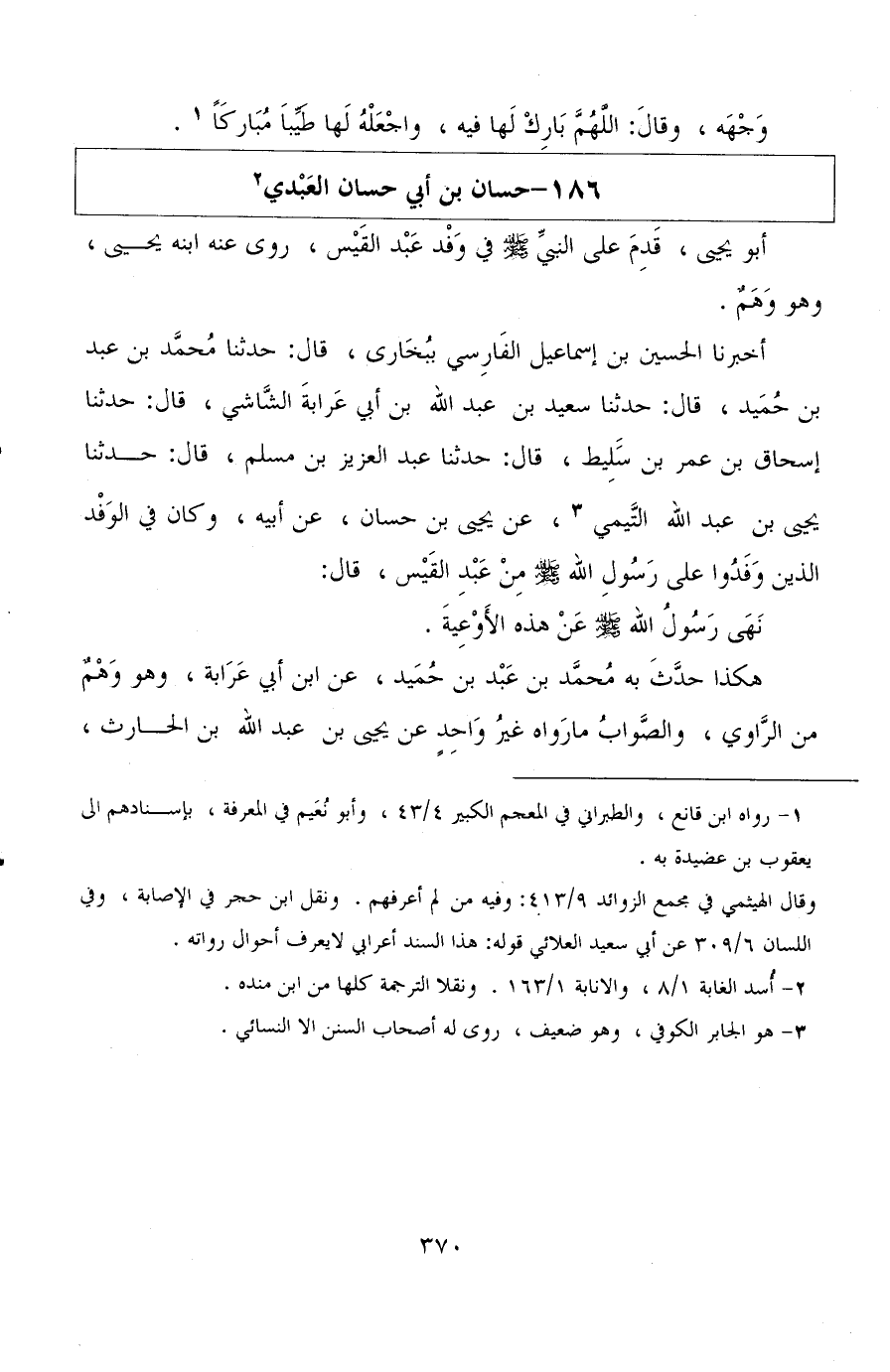 أخبرنا الحسين بن إسماعيل الفارسي ببخاري، قال: حدثنا محمد بن عبد بن حميد، قال: حدثنا سعيد بن أبي عرابة الشاشي، قال: حدثنا إسحاق بن عمر بن سليط، قال: حدثنا عبد العزيز بن مسلم، قال: حدثنا يحيى بن عبد الله التيمي، عن يحيى بن حسان، عن أبيه، وكان في الوفد الذين وفدوا على رسول الله صلى الله عليه وسلم من عبد القيس، قال: نهى رسول الله صلى الله عليه وسلم عن هذه الأوعية.