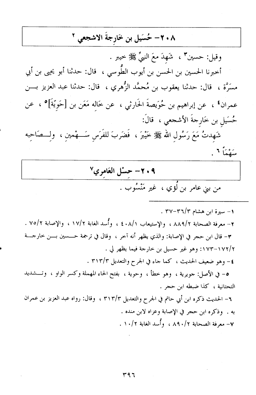 أخبرنا الحسين بن الحسن بن أيوب الطوسي، قال: حدثنا أبو يحيى بن أبي مسرة، قال: حدثنا يعقوب بن محمد الزهري، قال: حدثنا عبد العزيز بن عمران، عن إبراهيم بن حويصة الحارثي، عن خاله معن بن حوية، عن حسيل بن خارجة الأشجعي، قال: شهدت مع رسول الله صلى الله عليه وسلم خيبر، فضرب للفرس سهمين، ولصاحبه سهمًا.